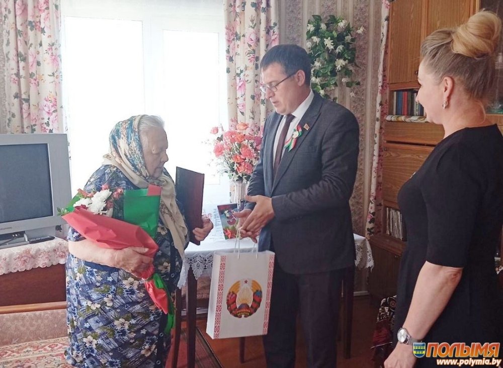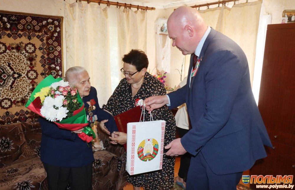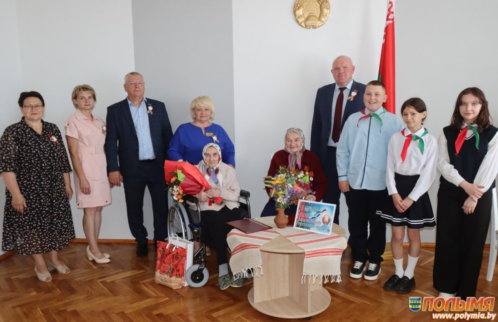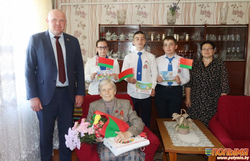 Дэлегацыя на чале са старшынёй Карэліцкага раённага Савета дэпутатаў Аляксеем Гаўрошам, старшынёй маладзёжнага савета пры Карэліцкім раённым Савеце дэпутатаў, членам маладзёжнага савета пры Савеце Рэспублікі Нацыянальнага сходу Рэспублікі Беларусь Юрыем Юрчыкам, старшынёй Малюшыцкага сельсавета Віктарам Дзірвуком, прадстаўнікамі  ДП «Племзавод Карэлічы» павіншавала былога малалетняга вязня нацызму Антаніну Іванаўну Бондар, якая пражывае ў аграгарадку Палужжа.