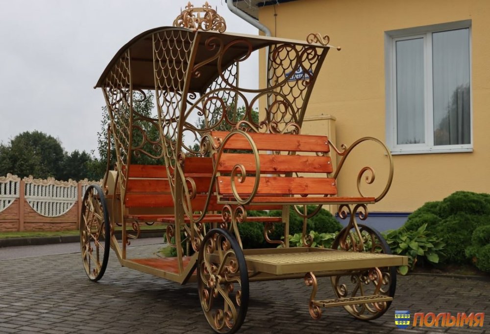 Сидения и пол — из дерева, покрытого морилкой и лакам. Такой прекрасный подарок своему району сделало ООО «НПП «Ника». В день установки кареты у скульптуры уже успели загадать желание молодожены Ангелина и Кирилл Микула.