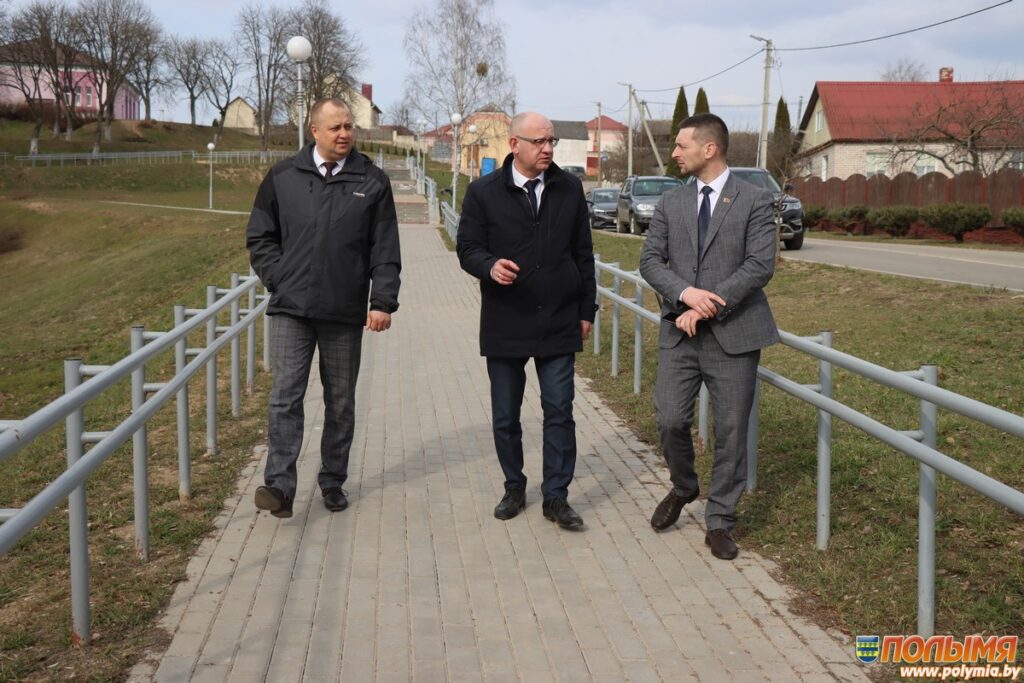 После заседания штаба Андрей Жук посетил некоторые объекты строительства и модернизации, в частности стройплощадку по ул. 8 Марта, где будет возведен многоквартирный жилой дом, а также стадион «Юность», где начаты работы по модернизации.
