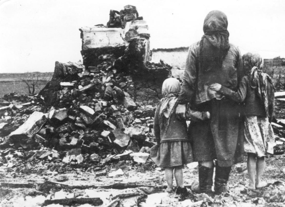 В 1944 году немцы при отступлении подожгли деревню. Из 100 хат уцелело меньше десяти, в том числе и наша. Люди стали копать землянки, строить времянки — вырубили почти весь Медвядский лес. Помню, наша соседка в склепе печку поставила и так зимовала. В нашем доме ютилось 10 семей. Спали на соломе, но как-то перегоревали. После войны в нашем доме даже школа была. Я только 4 класса закончила — и все, нужно было работать — ни отца, ни брата в хате, одни девки. Вот и пошли на хлеб зарабатывать.