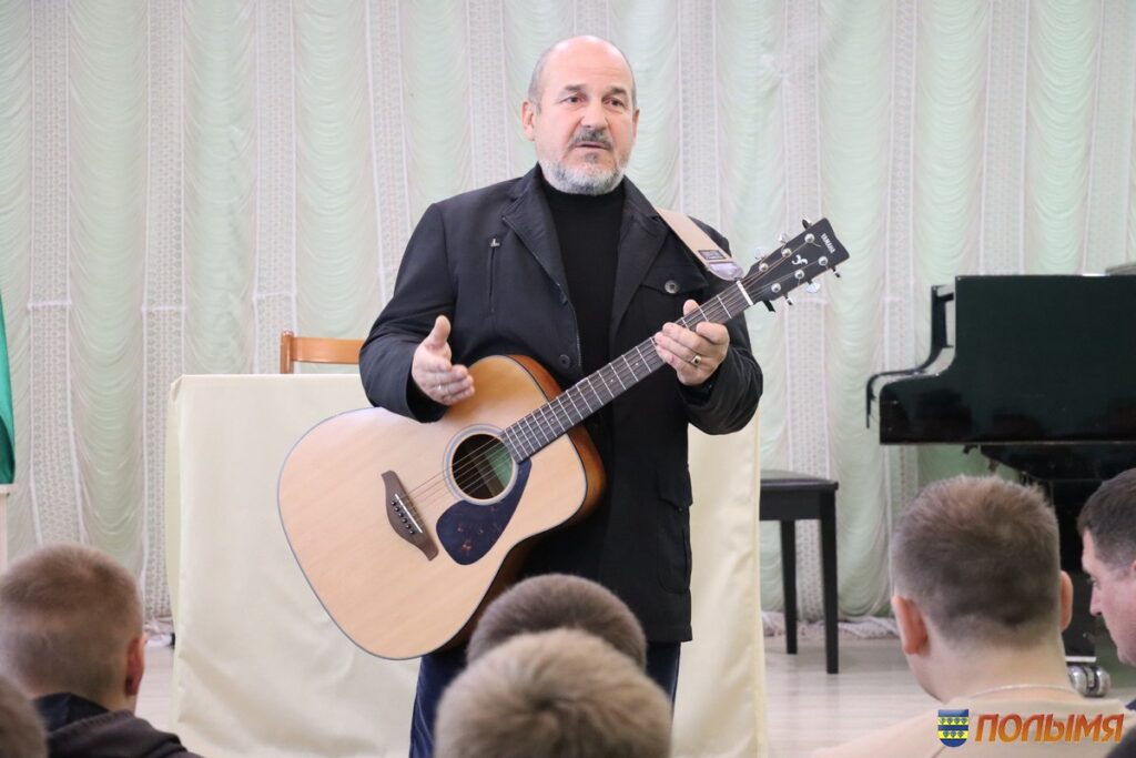 На мероприятии присутствовал и ветеран боевых действий в Афганистане Василий Балабанович. Он поделился воспоминаниями о том, как сам 47 лет назад таким же молодым парнем уходил в армию и испытывал гордость за то, что будет служить во славу Отечества. Ветеран боевых действий исполнил несколько армейских песен.