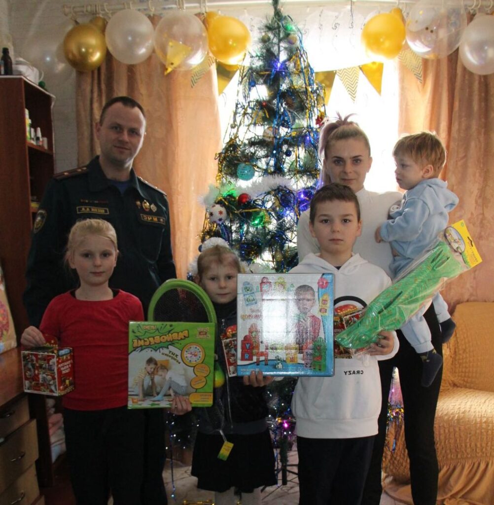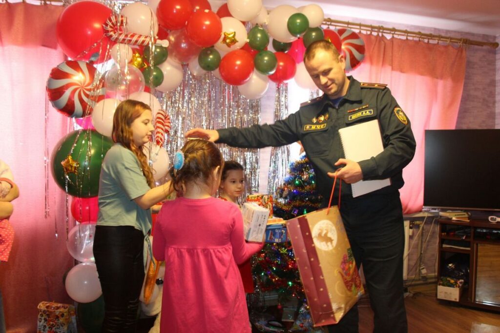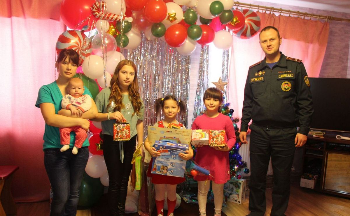 Заместитель начальника районного отдела МЧС Анатолий Шелк посетил многодетные семьи из агрогородка Райца и Воронча. Он вручил детям новогодние подарки и обратился к ним с добрыми словами: