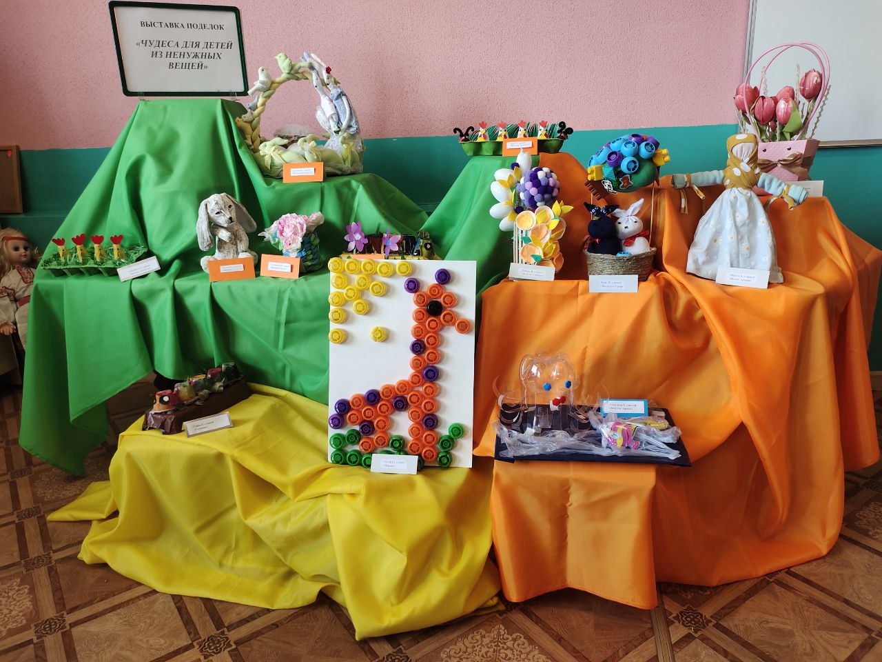 Ко Дню Земли в ГУО «Детский сад № 1 г. п. Кореличи» была организована выставка «Чудеса для детей из ненужных вещей». Воспитанники вместе с родителями проявили фантазию и старания, в результате чего из бросового материала появились необыкновенные игрушки, сувениры, украшения. Для их изготовления понадобились отслужившие свой срок вещи: пустые пластиковые бутылки, ненужные картонные коробки, использованные фломастеры, стаканчики от йогуртов и многое другое. Дети охотно делились впечатлениями от совместного с родителями творчества.