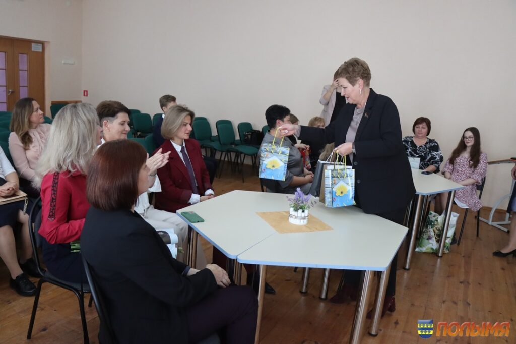 В актовом зале Мирской средней школы собрались целые учительские династии, педагоги, чьи дети учатся в педагогическом классе, а также ученики, которые уже проявляют интерес к педагогике. На встречу с ними пришли заместитель председателя райисполкома, председатель Кореличского районного отделения партии «Белая Русь» Евгений Чичкан и начальник отдела образования Ирина Осташевич.