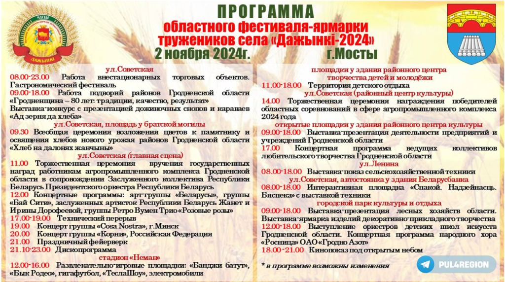 Программа областного фестиваля-ярмарки тружеников села «Дажынкі-2024»