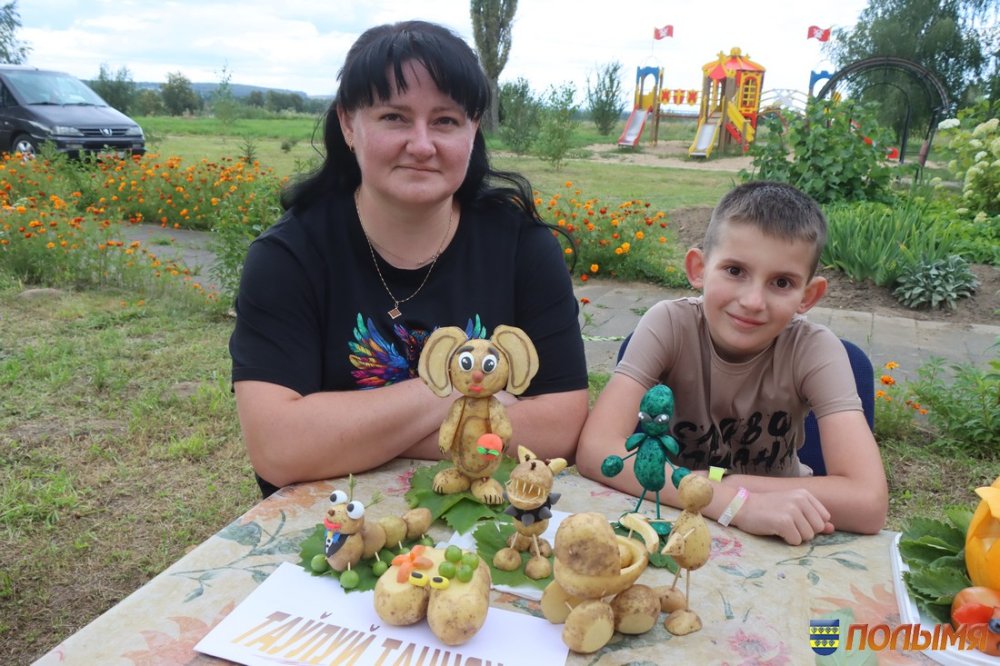 Дети и взрослые проявили креатив на выставке поделок из овощей «Картофель и фантазия». Татьяна Тавлуй и ее сын Дмитрий изготовили из корнеплодов сказочных героев.