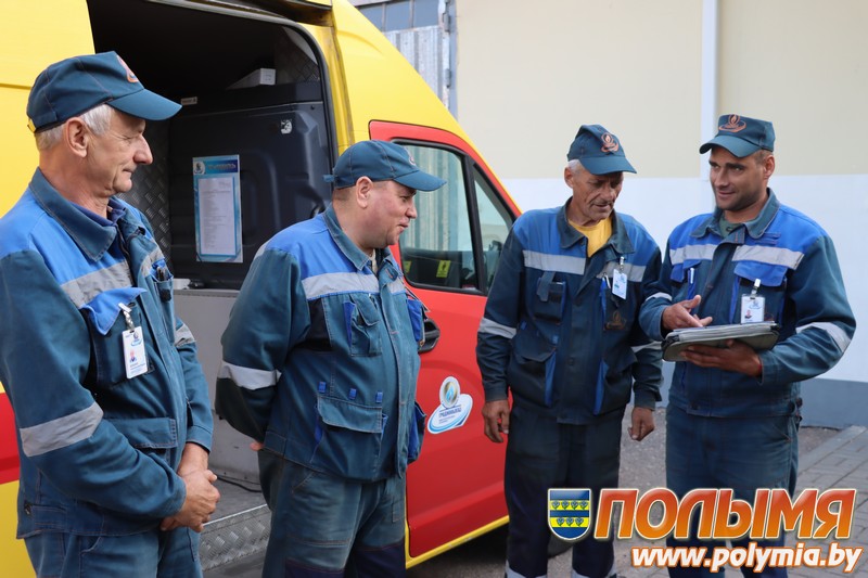 Прыязджаю, калі начная змена перадае справы дзённай. У “аварыйцы” працуюць 5 брыгад. Сёння мне пашчасціла паглядзець на працу вадзіцеля Уладзіміра Шэшкі і слесара Васіля Врубеля.